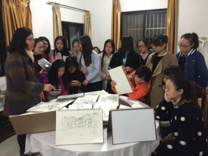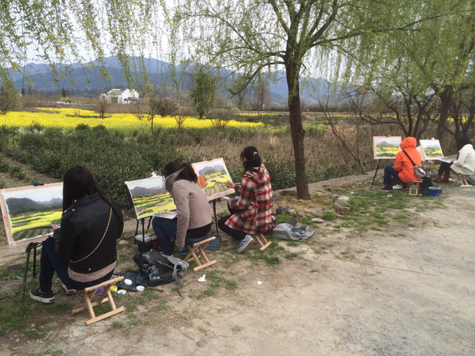 一到基地,同学们受到古村落千年文化意蕴的感染,便迫不及待观察周边的景色,提起画笔勾起了速写。在接下来的风景写生教学中,大家在老师的悉心指导下,白天穿梭于深浅不一的古巷,用画笔描绘古村落粉墙黛瓦的印象,用色块和线条记录了青山绿水环绕的徽派古建筑以及漫山遍野的油菜花,用相机捕捉古民居中惟妙惟肖的“三雕”造型。晚上指导老师认真点评员工的作业,员工提问,老师答疑解惑,提出解决问题的方法,明确第二天的作业要求;班主任老师深入员工的宿舍,关心员工的生活,帮助员工解决生活中遇到的问题。指导老师的精心指导让同学们体验到了专业成长的快乐,班主任老师无微不至的关心让大家感受到了集体生活的温暖。
