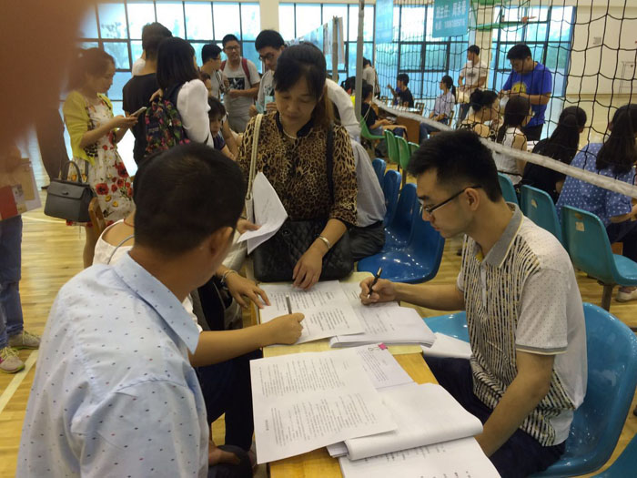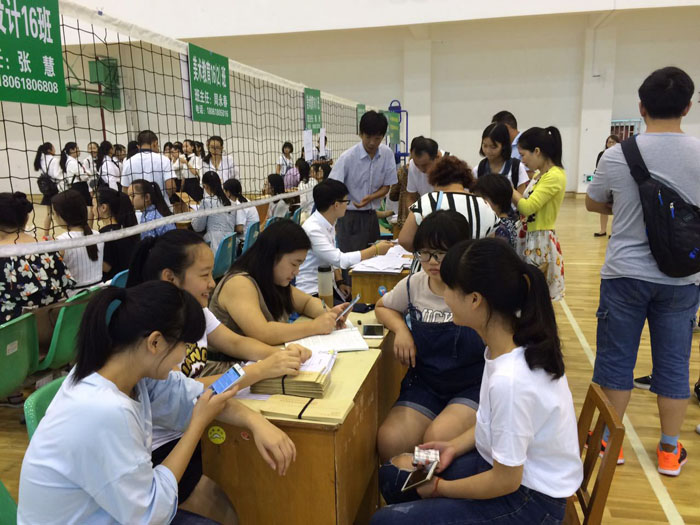 当日,6位新生班主任各自带领5名员工早早地来到公司设置的新生报到点,做好新生报到入学的准备。之后,他们热情接待新生及其家长,指导新生的报到注册,熟悉校园及教学环境,精心安排新生的生活,分班组织召开新生的第一次班会。