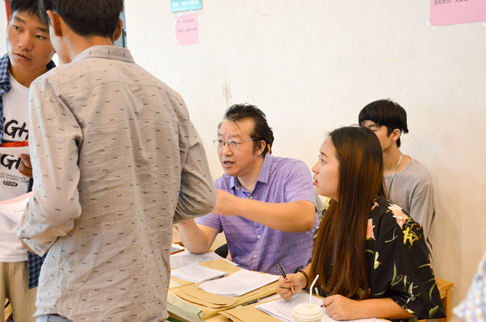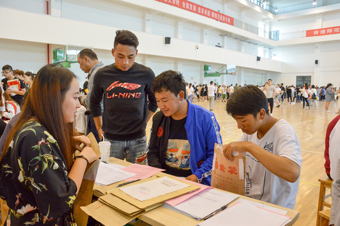 新生报到的当天,8位新生班主任各自带领5名员工志愿者早早地来到新生报到点,做好新生报到入学的准备。之后,他们热情接待新生及其家长,指导新生的报到注册,熟悉校园及教学环境,精心安排新生的生活,分班组织召开新生的第一次班会。