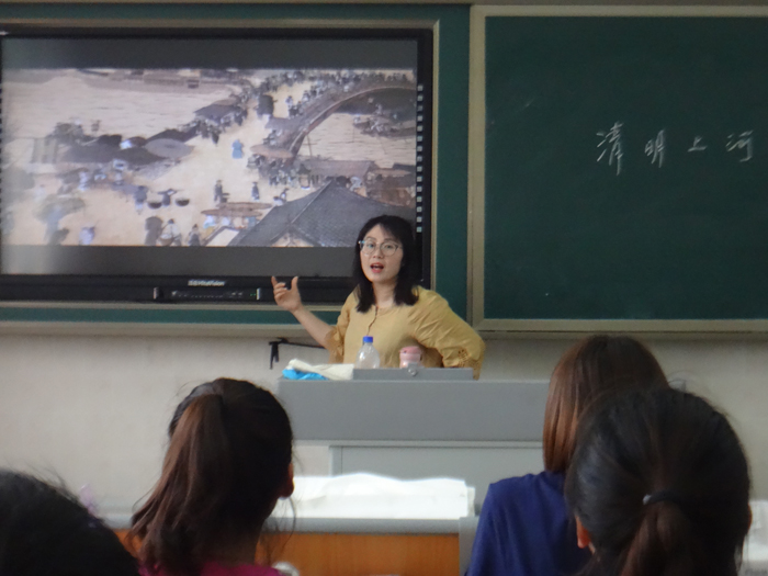 5月17日下午,美术教育教研室李琦老师在美术(专)16班的教室上了一堂“宋元美术――《清明上河图》”公开课,系部的部分老师观摩了课堂教学。