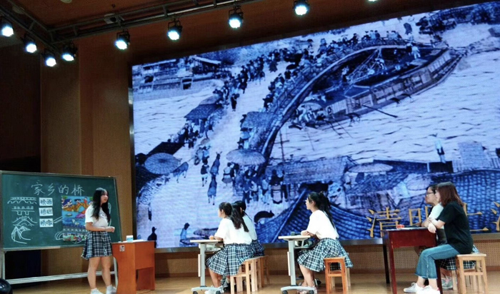 金沙如许,美画如织。现场汇报中的沙画演示《我们》激发出更多灵感创意,把现代融入古典,由流行转入童年;《纸片人》设计制作让立体化作平面,变化出经典的人物造型;“三字一画”教学基本功展示,书写与绘画的结合,创设了职业能力训练的生动场景;小学美术微课《家乡的桥》讲述了南通这座“江海明珠”衍生出的建筑特色与文化内涵;服装设计《春日》运用简单分割整体搭配,以朴素的废旧原料演绎新时尚的环保理念。