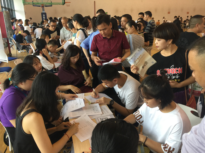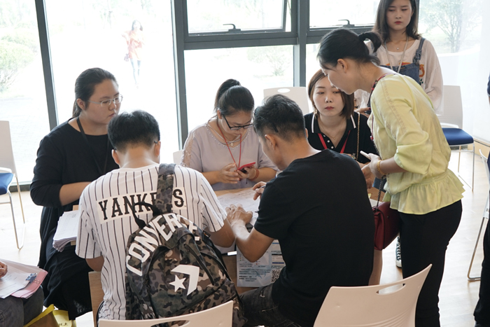 新生报到的当天,6位新生班主任各自带领4名员工志愿者早早地来到集团体育馆新生报到点,认真做好新生入学报到的准备。之后,他们热情接待新生及其家长,指导新生报到注册,熟悉校园及教学环境,精心安排新生的生活,分班组织召开新生的第一次班会,进行入学常规和专业理想教育。