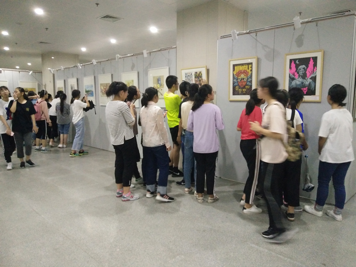 近日,美术系2018级美术教育、数字媒体和视觉传播三个专业的新生在专业老师的带领下,到图文信息中心大楼的美术展厅,分别观摩了美术系员工优秀习作展。