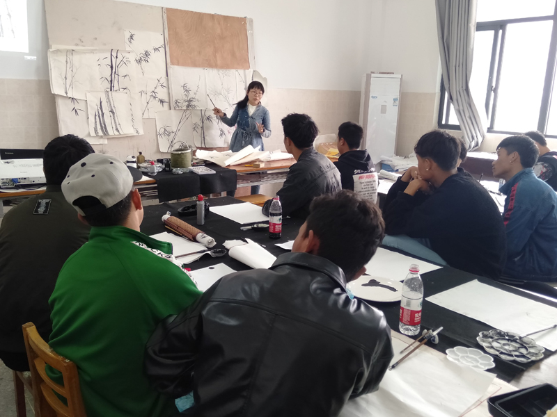 4月24日,美术教育系举行“每月一课”教研活动,赵丽华老师在文昌楼四楼中国画教室上“漫卷清风写墨竹”――写意竹画法每月一课。