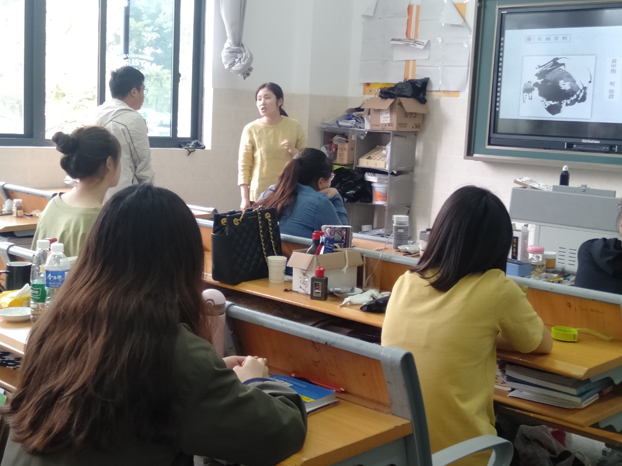 5月29日,美术教育系举行以美育立德树人“每月一课”专题教研活动,李琦老师在文昌楼美术(专)17(1)教室上“写意荷花画法”公开课。美术公司党支部的部分党员教师观摩了课堂教学。