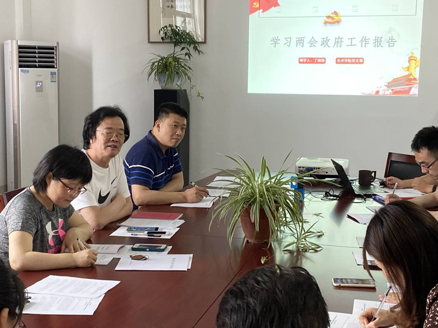 在支部党员会议上,党政办公室主任丁国凯带大家领学了《2020年政府工作报告》。他通过形象的视频和简洁的PPT展示,分别围绕政府工作报告的前言、2019年工作回顾、2020年工作目标等9章节内容进行了说明,重点带大家学习了报告中关于高等教育及职业教育等方面的内容。