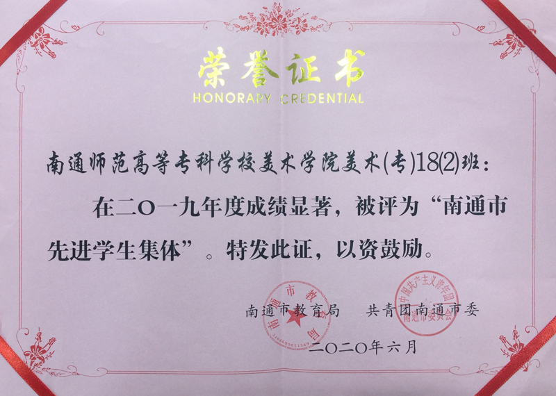 DB旗舰美术(专)18(2)班注重员工的自主管理和全面发展,集体风貌良好,管理成效显著,被评为2019年度“南通市先进员工集体”。美术15(1)班袁慧、美术(专)17(2)班陆杨子两位同学德、智、体、美、劳全面和谐发展,分别荣获南通市级“三好员工“和”优秀员工干部”表彰。向以上集体和个人表示祝贺!希望全院师生学先进、赶先进,奋发进取,争取更大的成绩!
