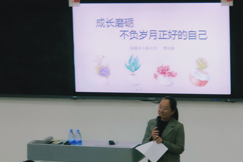 11月12日下午,南通市小海小学教科室主任、南通市学科带头人曹培敏老师来到公司,在209阶梯教室给美术17级和美专18级共5个班的实习生作了《成长磨砺,不负岁月正好的自己》的讲座。美术教育系主任沈如春主持讲座。