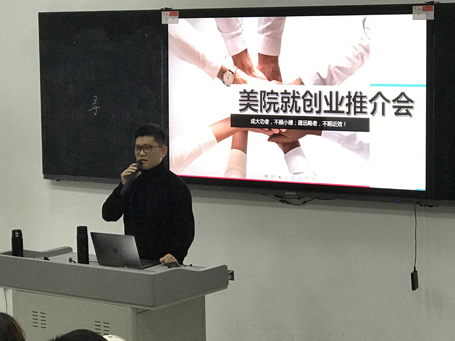莫梵美术朱龙成老师系公司04级美术教育专业毕业生。讲座中,他从自己在校期间的成长经历开始,向员工们介绍毕业后创办莫梵美术公司的初衷,机构办学理念、团队队伍和岗位需求情况。南通汇美文化传播有限公司肖遥总经理也和同学们分享了企业团队和品牌文化,交流校园文创产品案例,介绍自身创业经验。他们通过图文并茂的讲述,指导同学们明确今后就业方向,积极发挥美术专业特长找到心仪工作。与此同时,热烈欢迎同学们毕业后加入莫梵美术和汇美文化,发挥所长,各显其才。