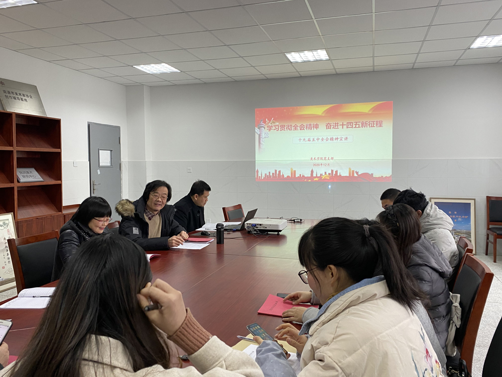 12月23日下午,美术公司党支部在国秀楼党员活动室举行“三会一课”活动,公司副经理、支部委员黄斌斌同志为大家上“贯彻十九届五中全会精神,奋进十四五新征程”党课。活动由公司书记陈竹林主持。