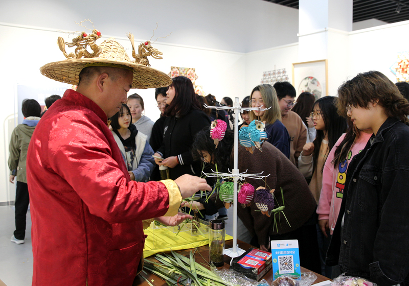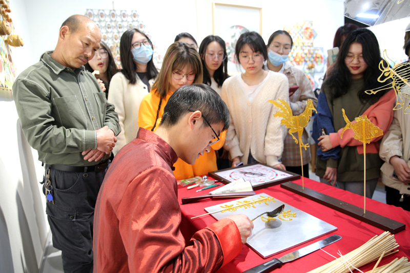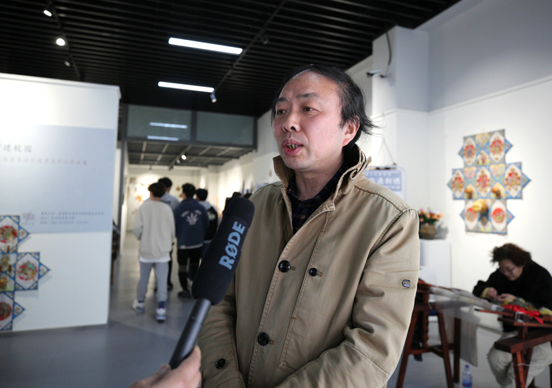 仪式结束之后,南通电视台采访了朱敏经理,他认为,非遗文化走进校园是高校课程建设的手段之一,对高校美术教学内容的优化能起到很好的补充作用,同时,对推动美术文化的传承和创新具有现实意义。伴随着传统美术的文脉回归和情感认同,非遗美术文化一定会成为高校美育的传统载体,为弘扬中华优秀传统文化奉献力量。在美术馆,参加活动的来宾和公司的师生观摩了南通非遗文化传承人的现场演示,来宾和师生对非遗文化传承人的精湛技艺赞不绝口。