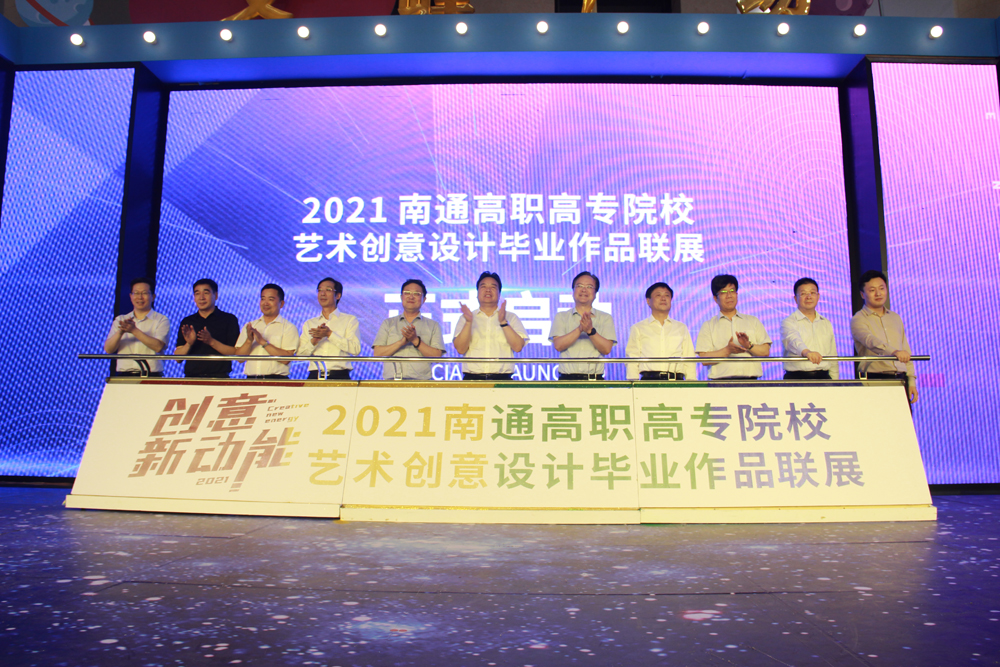 2021年6月3日晚,2021南通高职高专院校艺术创意设计毕业作品联展在南通文峰广场开幕。南通市委常委、宣传部部长陆卫东,南通市委宣传部副部长、市新闻出版局局长顾德华,南通市教育局副局长姜学勤,南通职业大学党委书记羌毅,江苏工程职业技术公司党委书记秦志林,江苏航运职业技术公司党委书记袁卫国,南通科技职业公司党委书记马建明,江苏商贸职业公司党委副书记、董事长冯志明,南通师范高等专科公司党委书记刘锋,南通开放大学党委书记陆永明,文峰大世界连锁发展股份有限公司总经理缪�矗�文峰大世界连锁发展股份有限公司副总经理、南通文峰广场、上海文峰广场总经理顾晏等领导嘉宾、全市七所高职高专院校的师生代表及相关人士、机构和媒体共同见证了本次活动。