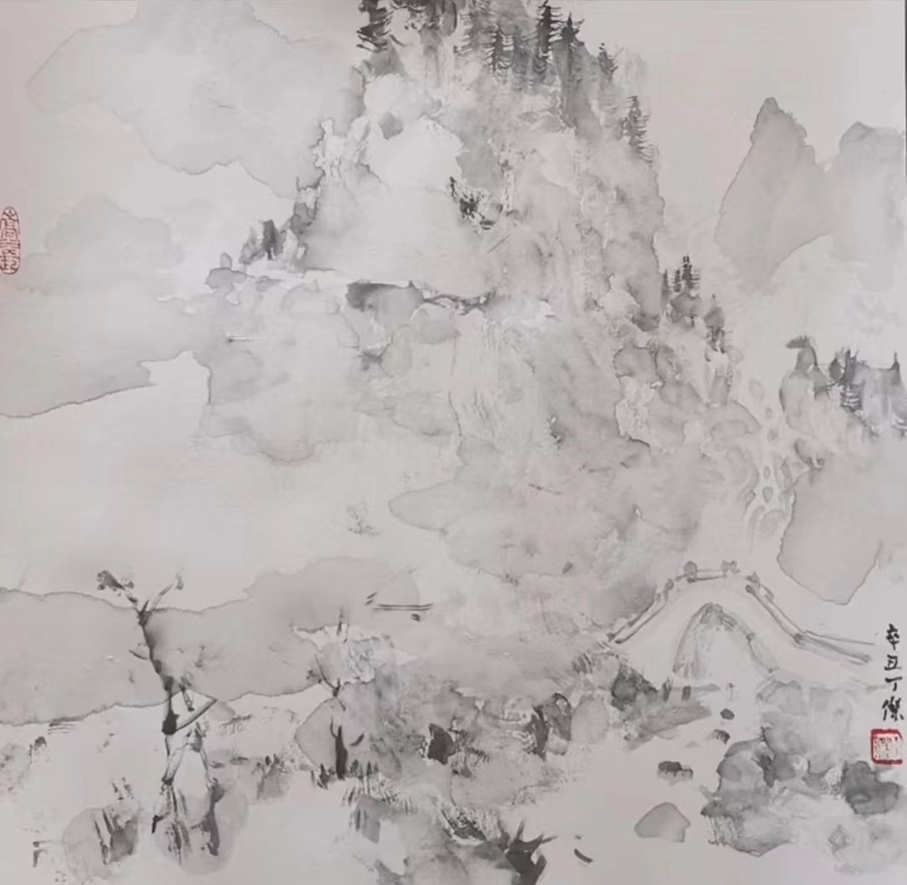 《遥望大山》中国画 陈鹏刚