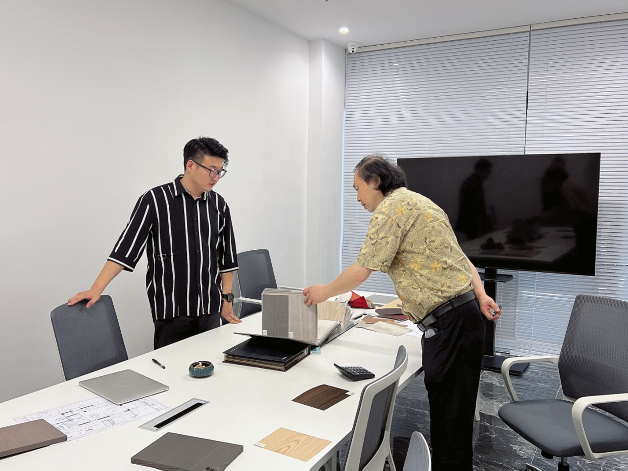 锦华项目部经理冯宝民、人力资源部经理钱冠妤、公司优秀毕业生,客户经理李超,锦华高级设计师曹成铭、姜荣等人员就校企合作、人才需求、项目教学等和朱敏、陆洲进行了探讨,校企双方达成共识,深层次推进产学研合作,突出人才培养质量,为员工就业之路打下坚实基础。