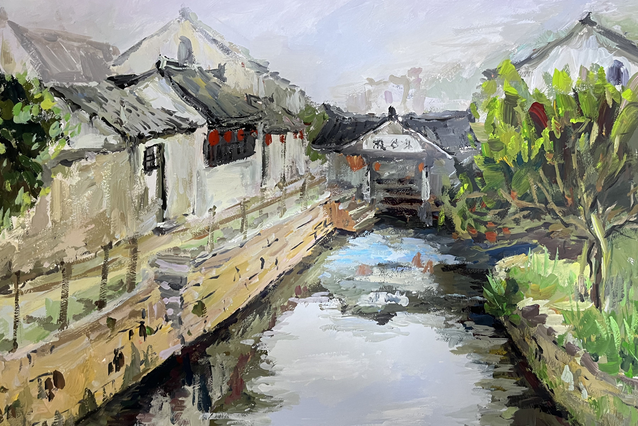 在这次“走进田园乡村,画出幸福美景”的活动当中,DB旗舰的30多名同学在支部党员老师的指导下,沿着江苏田园乡村路径,或走进特色乡村对景写生,或利用网络平台根据资料创作,共赏江苏特色田园乡村美景的同时,从时代之变、中国之进、人民之呼中提炼主题、萃取题材,采用色彩、中国画、版画、素描等艺术形式进行美术作品创作,共创作特色田园乡村美术作品30多幅。这些美术作品,形式新颖、主题鲜明,田园生活气息浓厚,展现了新时代江苏田园乡村的美丽景象和老百姓创造美好生活的精神面貌,体现了美师美生以美育人、向美出发、服务社会的责任担当。同时,在实地采风和创作实践的过程中,美师美生真切体会到特色田园乡村的独特魅力,深刻感受到江苏高水平全面建成小康社会取得的巨大成就。