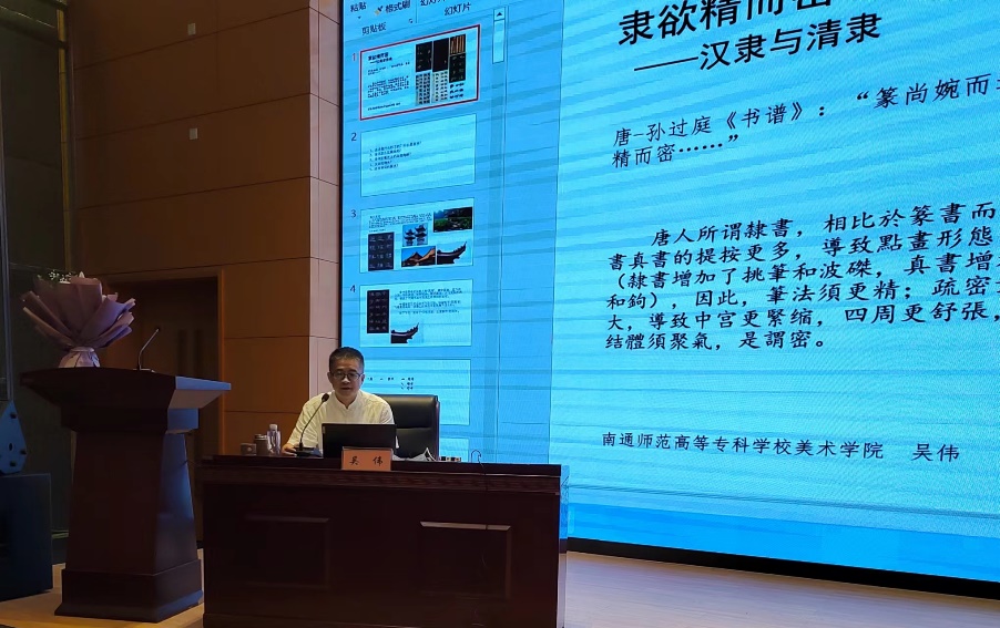 9月10日和9月16日下午2时,公司美术教育系资深教师徐贵明和吴伟老师,受南通市图书馆邀请作为本年度的“静海奖书法展公益讲座”主讲,向全体市民开放,分别作了《书法笔法漫谈》和《隶欲精而密——汉隶和清隶》的书法讲座。