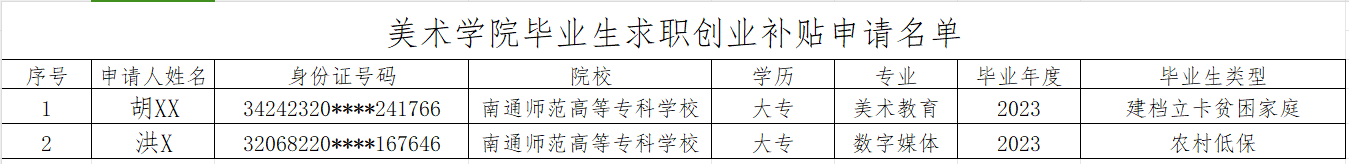 经自愿报名,公司审核,以下同学符合求职创业补贴条件,现予以公示一周,如有异议请联系张老师0513-55092192。