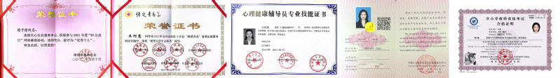 2021年获中国心理卫生协会“心理健康辅导员”专业技能证书