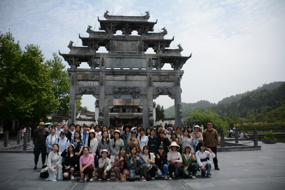与徽州“对话”。水墨画般的村落安然伫立,粉墙黛瓦错落有致,青石铺展曲径通幽,南湖春晓九曲十弯,悠然韵味呼之欲出。无论是秀美的自然山水,还是丰富的文化资源,自然交融、古朴典雅、特色鲜明,给大家带来强烈的视觉冲击和心灵震撼。师生们用心感悟,探讨徽派建筑的历史传统和艺术特色,体会蕴含在古村落祠堂、宅院以及精美石雕、砖雕、木雕、楹联等背后深厚的文化内涵,接受儒家仁义礼智信、温良恭俭让的美育浸润。