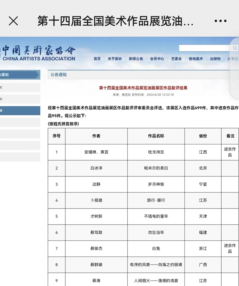 全国美术作品展览是由中华人民共和国文化部、中国文学艺术界联合会和中国美术家协会共同主办的规模最大、参与范围最广、最具影响力和权威性的国家级综合性美术大展,每五年举办一次,代表了国家美术创作的最高水平。