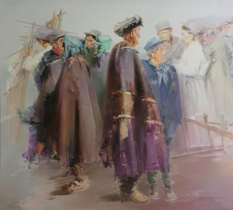 油画《桑梓地》取材于四川凉山彝族自治州昭觉县,作者运用唯美抒情的色彩,虚实相间、灵动舒缓的笔触,赋予画面诗性的色调与情感,传达了对劳动人民平静且甜美生活的赞美。陈彤老师多年沉湎于油画创作,或精细描摹、或纵横写意。他所塑造的人物形象细腻传神,重在内心世界的表达,或悲悯、或凝重、或冷峻,对劳动者形象深情常驻。多年以来,他一直深入生活、扎根人民,这不仅表达了他对现实的深切关注与对时代的敏锐体悟,更展现了一名师范人对美育的初心与坚守。