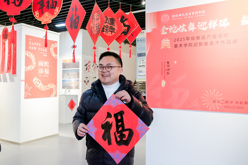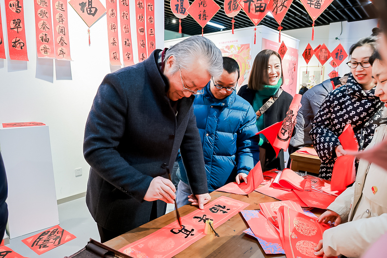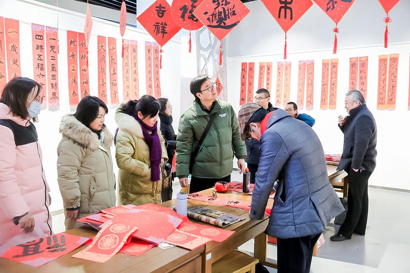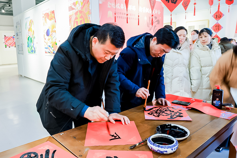 祥龙辞岁,灵蛇纳福,春节的脚步日益临近,喜庆的氛围日渐浓厚。2025年1月15日,由美术公司党总支联合公司党委宣传部、校工会共同举办的“金蛇炫舞迎祥瑞,翰墨飘香贺新春——2025年绘春送万福”活动在国秀楼一楼美术馆展厅成功举行,为全校教职员工献上了一场精彩纷呈的文化盛宴。