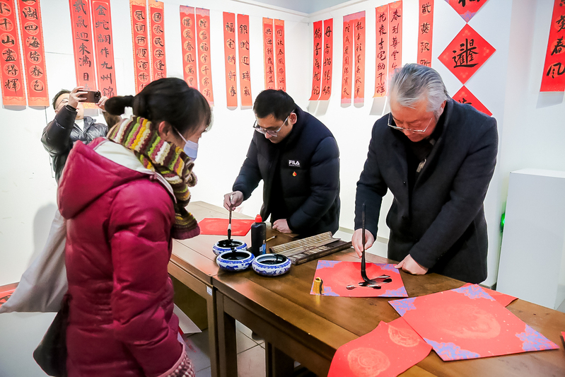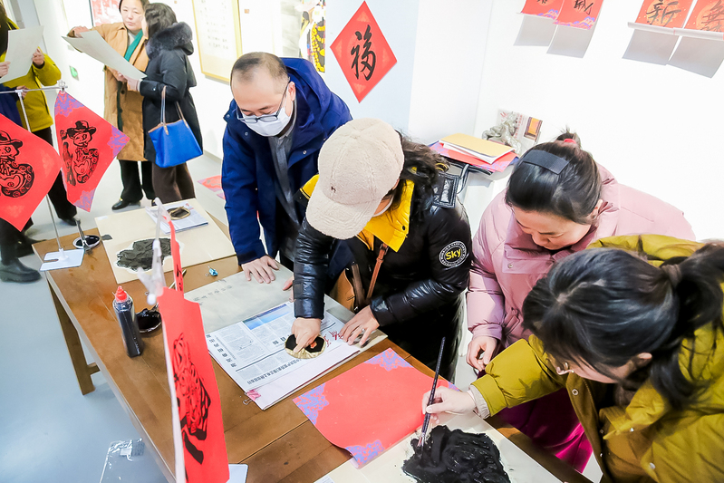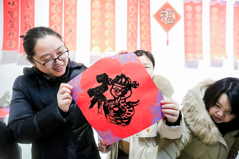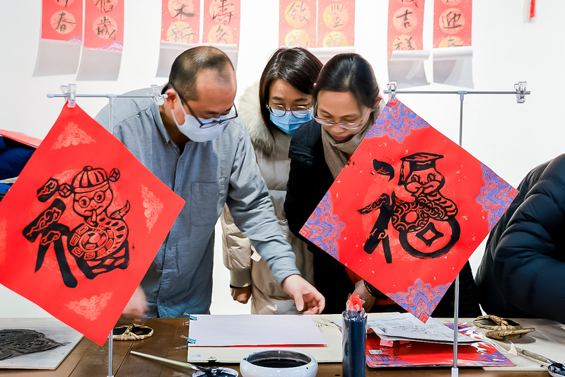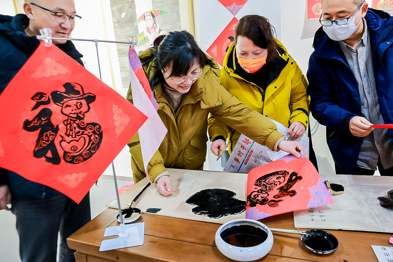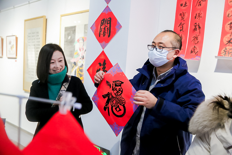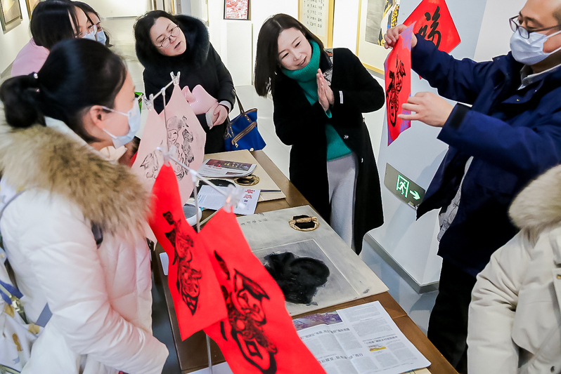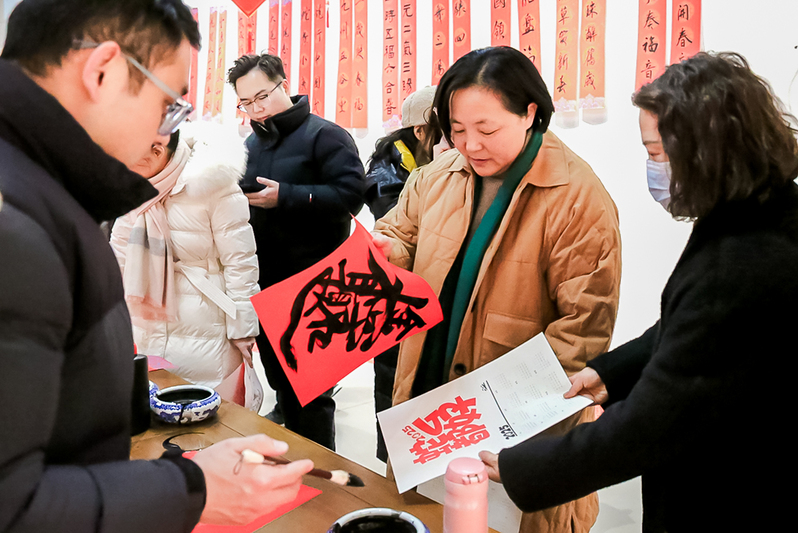 很多老师早早就通过公司微信平台看到了活动通知,一进门就被馆内的喜庆布置所吸引,纷纷手拿“福”字拍照打卡,自称是“喜娃”、“福娃”,大红的“福”字散发着浓郁墨香,承载着大家对新年的无限憧憬与祈愿。