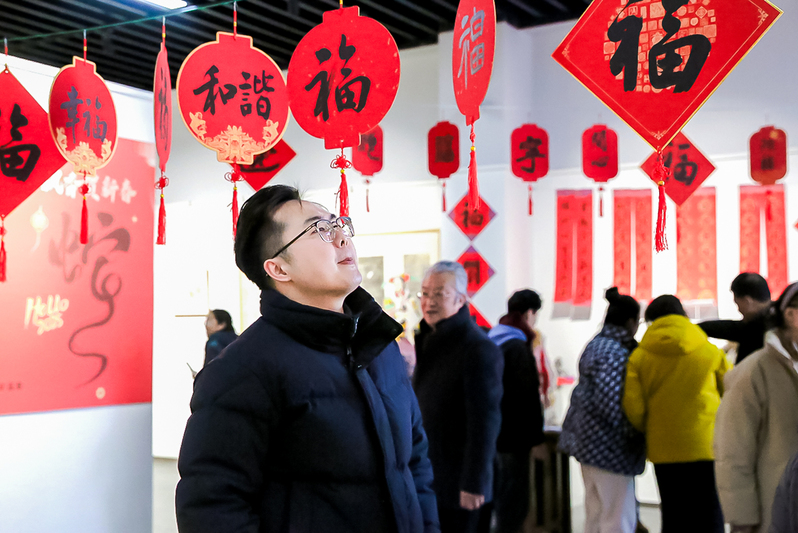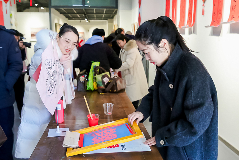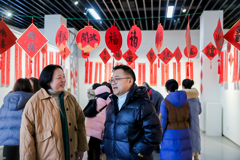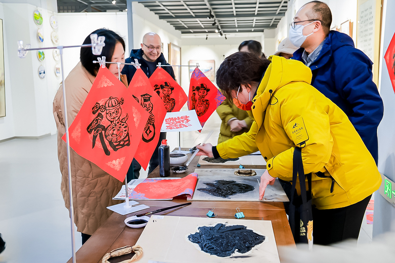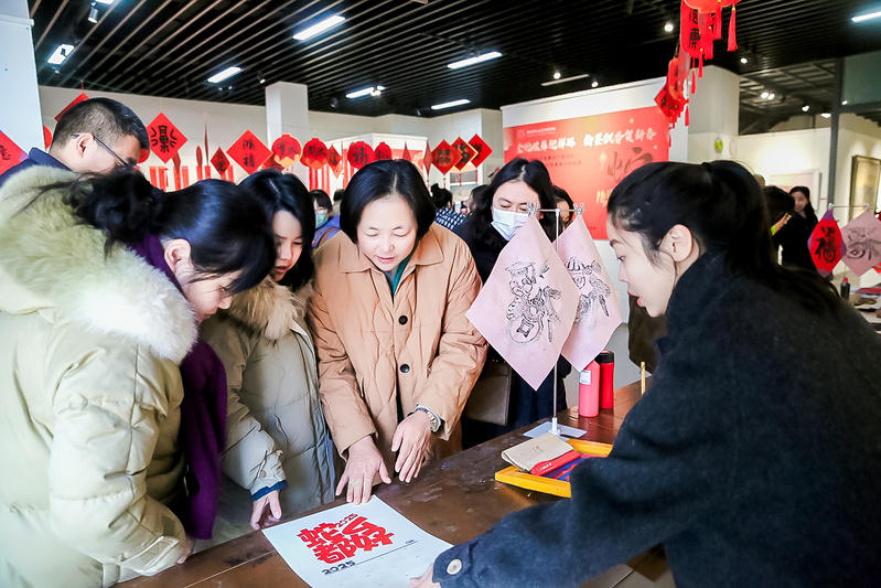 老师们在接“福”间隙,纷纷踏入美术馆深处,驻足在年俗文化作品前,细细品味着画中的意境与情感。这场展览不仅丰富了老师们的精神文化生活,也进一步增强了美院的凝聚力和向心力,为即将到来的新年增添了浓厚的文化氛围和喜庆色彩。