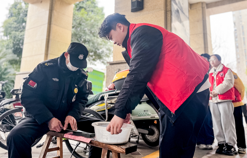 讲座结束后,社区居民积极运用所学摄影技巧,将镜头对准社区内磨刀、理发、量血压、测血糖等公益服务,定格下一个个温暖瞬间。党员教师和团员青年穿梭在人群中,提供一对一指导,耐心讲解拍摄角度、光线运用、创意构思等技巧,现场洋溢着浓厚的学习氛围。
