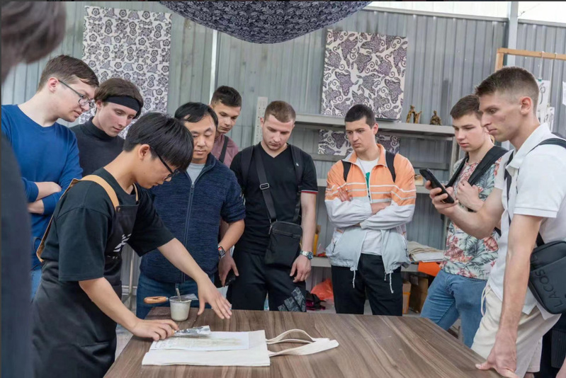 艺亩三分地工作室为俄罗斯叶列茨国立大学师生体验蓝印花布图案