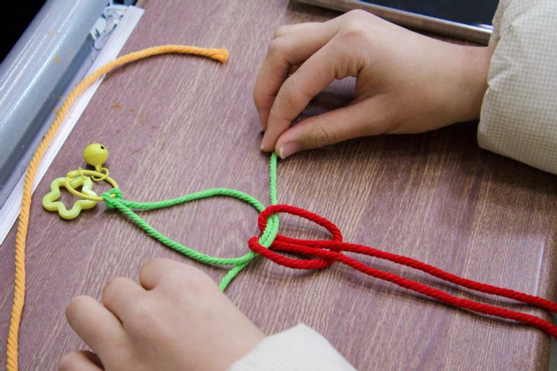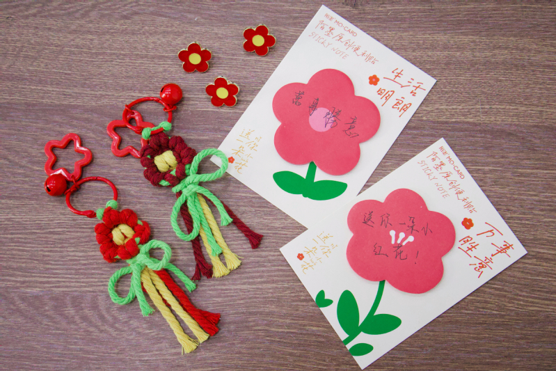 “每一根丝线,都是对奉献精神的立体诠释。”DIY社成员以红黄棉线为媒介,设计出简约却不失巧思的小红花编绳。小红花看似简单,却处处彰显着巧思,红色棉线寓意着雷锋精神中那份炽热的奉献之心,黄色棉线则代表着希望的曙光,二者交织,恰如雷锋精神在生活里点亮希望,传递温暖。