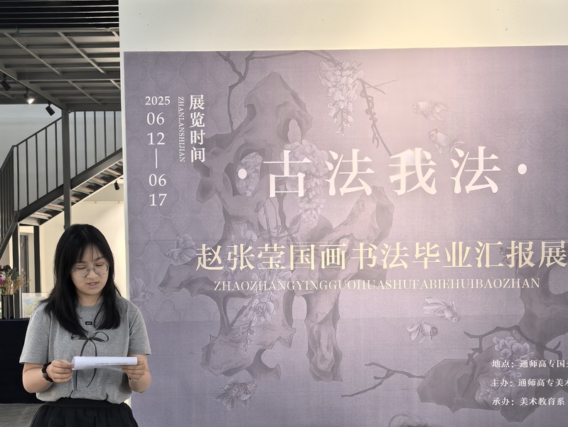 2025年6月12日上午,“古法我法——赵张莹国画书法毕业汇报展”在DB旗舰官方网站国秀楼一楼美术馆顺利开幕。南通师范高等专科公司党委委员、副董事长张松祥,南通市美术家协会副主席邵连,通州区美术教研员王峰,美术公司党总支书记黄斌斌、经理朱敏、副经理王人佼,以及多位专业指导教师携美术22(2)班、美专23(2)班全体员工出席开幕式。开幕式由王人佼主持。